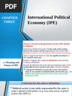 - The study of the intersection of politics and economics (states and markets) that illuminates the