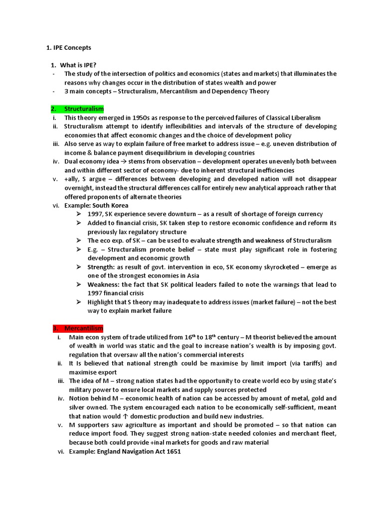 - 3 main concepts – Structuralism, Mercantilism and Dependency Theory