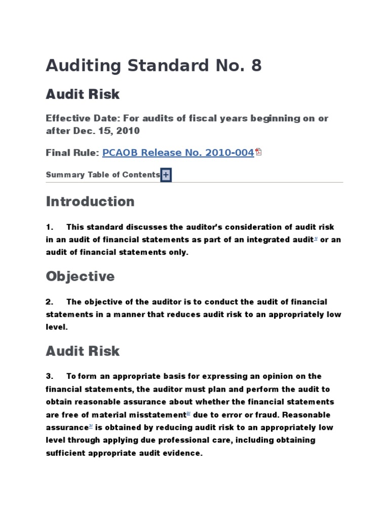 Integrated with An Audit of Financial Statements, also apply. However, the risks