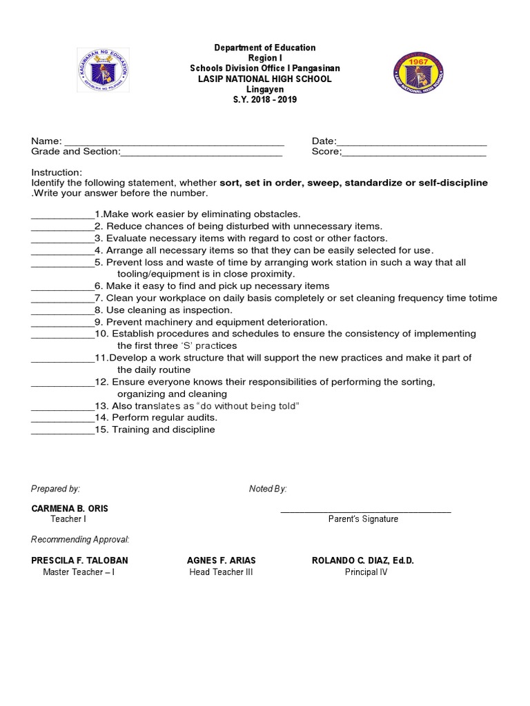 Grade and Section:____________________________ Score;_________________________
