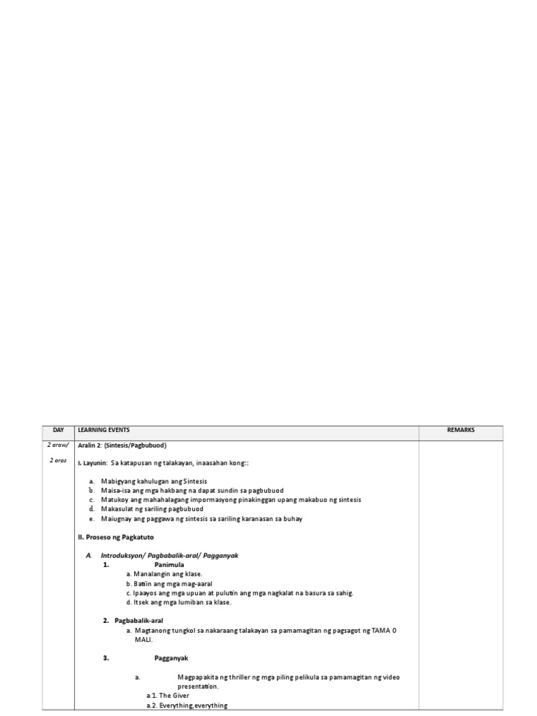 2 araw/ Aralin 2: (Sintesis/Pagbubuod)