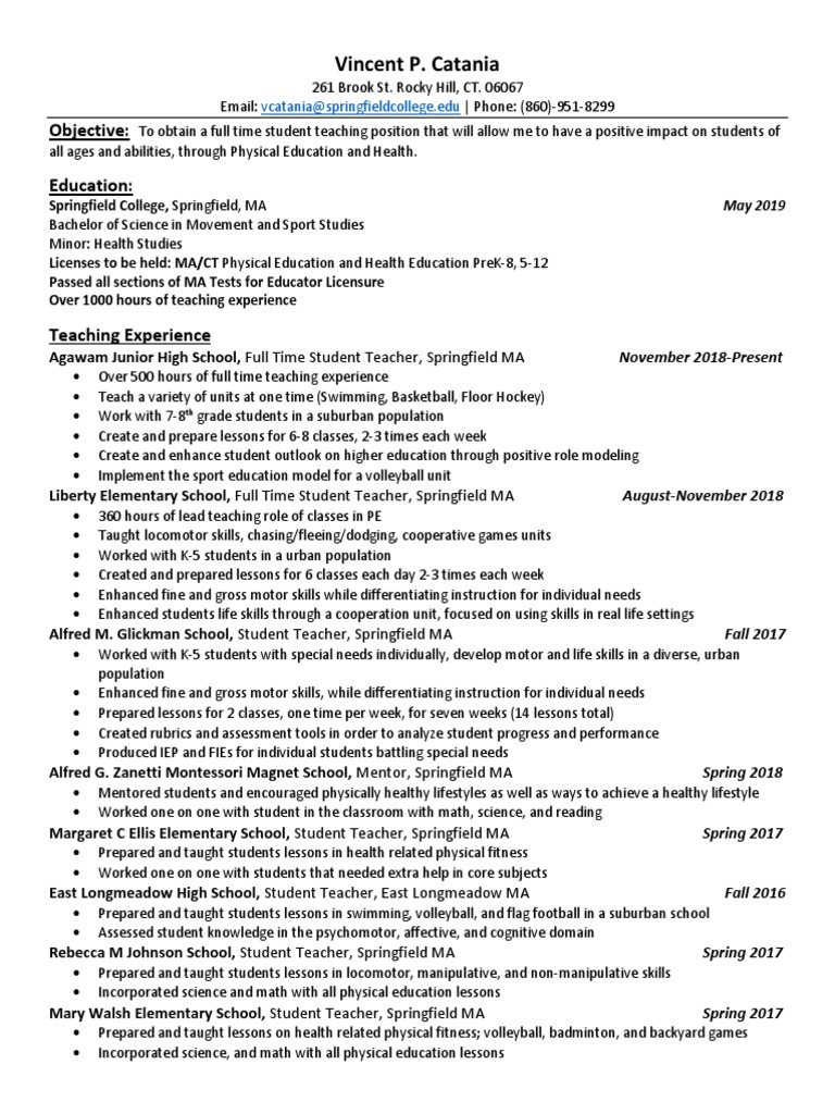 Email: vcatania@springfieldcollege.edu | Phone: (860)-951-8299