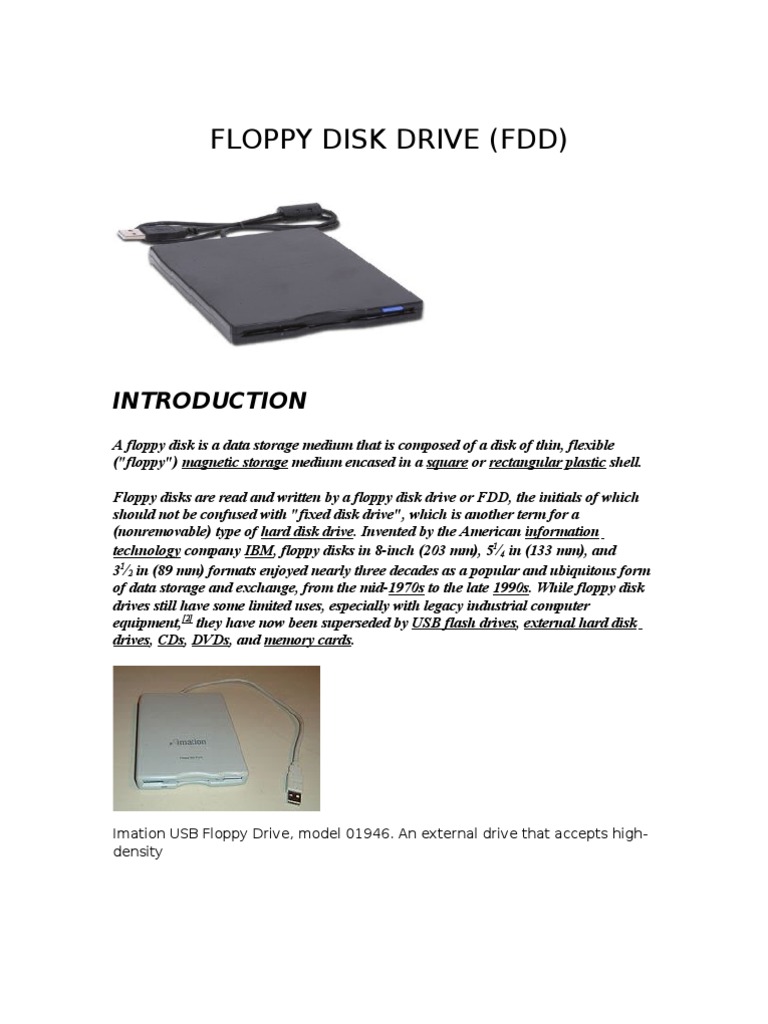 Floppy Disk Drive (FDD) : Imation USB Floppy Drive, Model 01946. An External Drive That Accepts High-Density