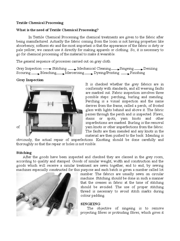 which needs subsequent bleaching to get high degree of whiteness. Grey singeing is also
