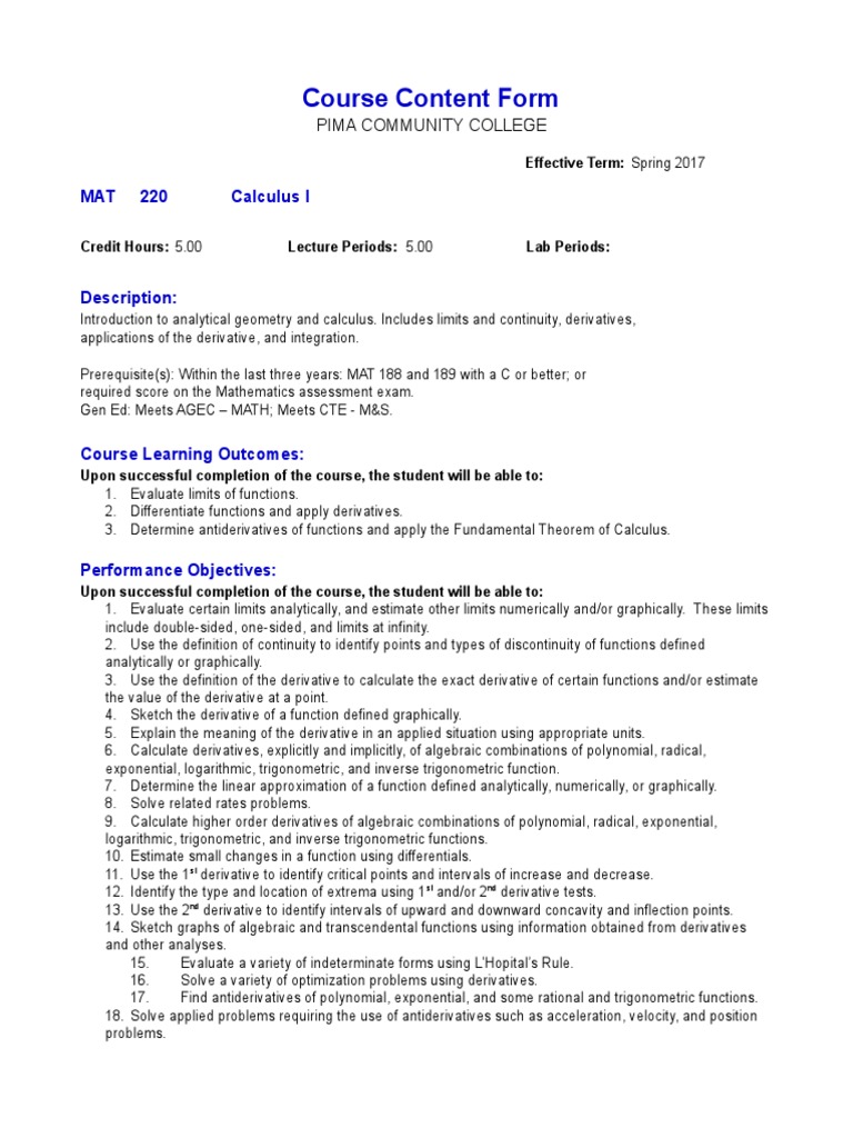 Introduction to analytical geometry and calculus. Includes limits and continuity, derivatives,