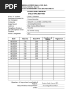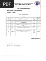 DAY DATE DAILY ACCOMPLISHMENT WORKING