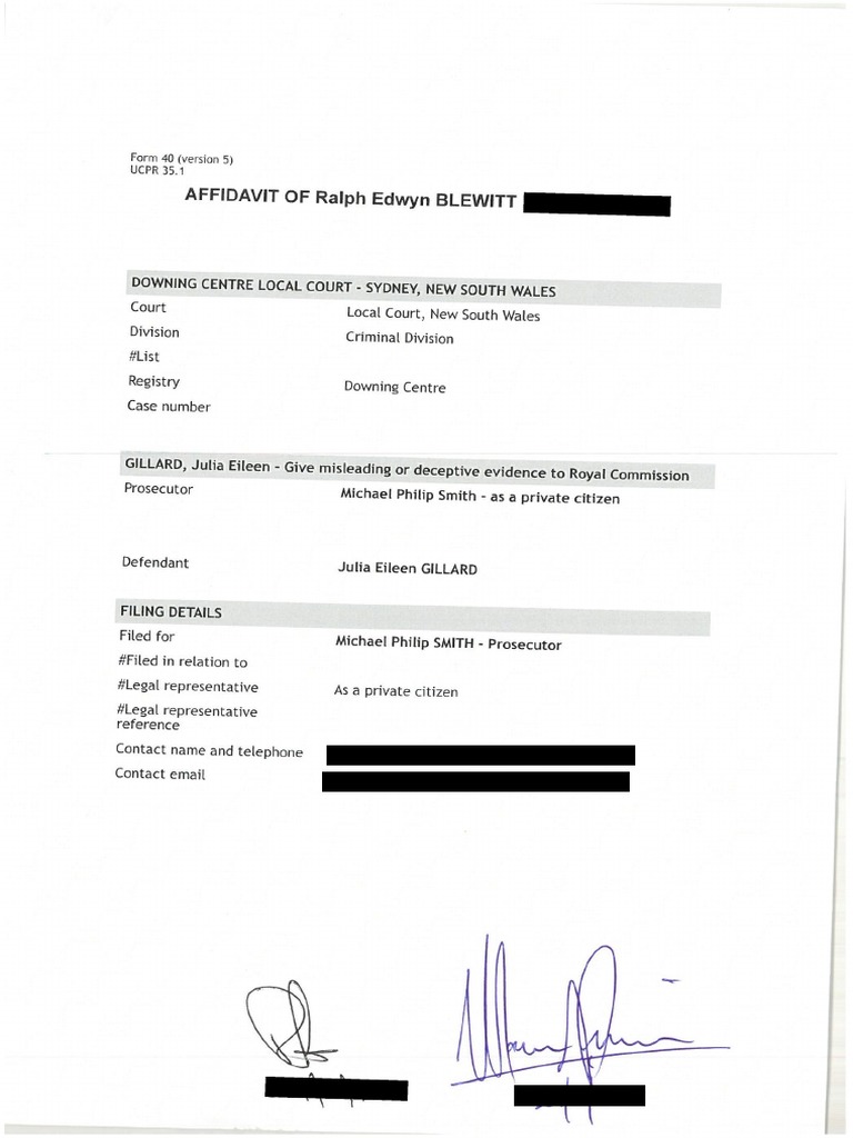 Blewitt Affidavit (Redacted) in The Criminal Prosecution of Julia Gillard