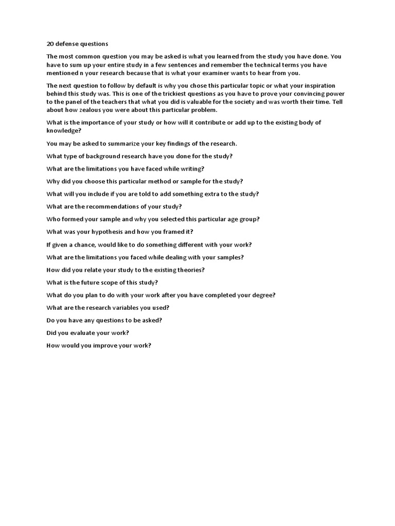 20 defense questions