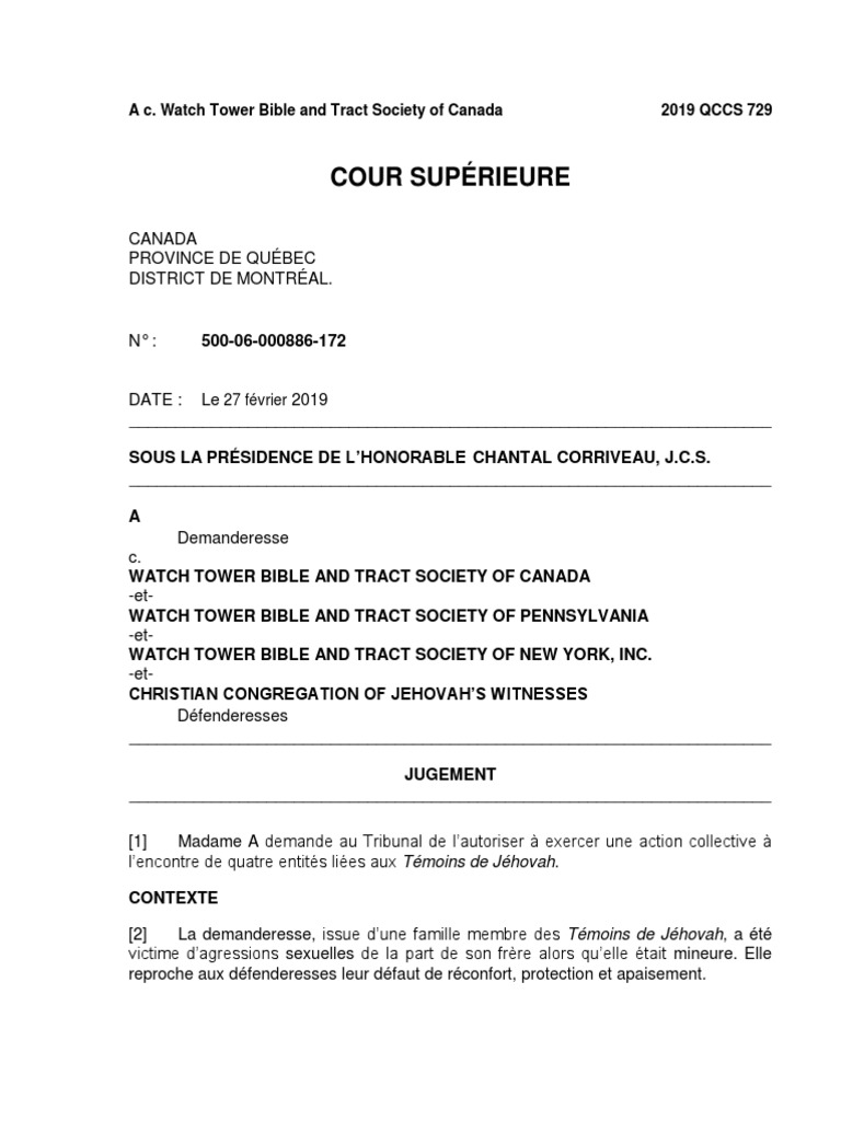 A c. Watch Tower Bible and Tract Society of Canada 2019 QCCS 729