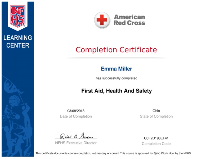 This certificate documents course completion, not mastery of content.This course is approved for 6(six) Clock Hour by the NFHS.