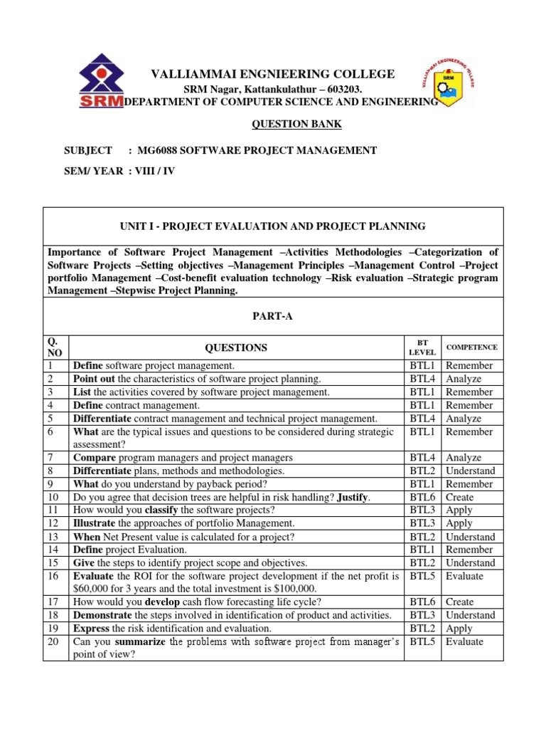 2 Point out the characteristics of software project planning. BTL4 Analyze