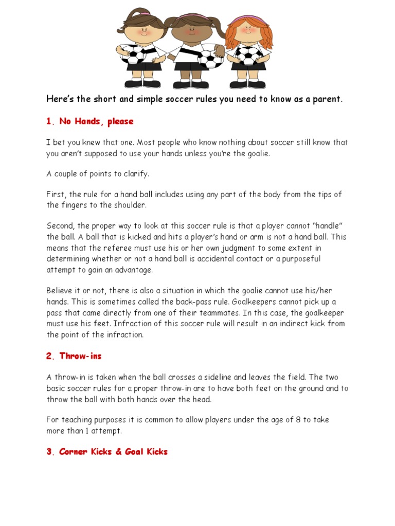 must use his feet. Infraction of this soccer rule will result in an indirect kick from