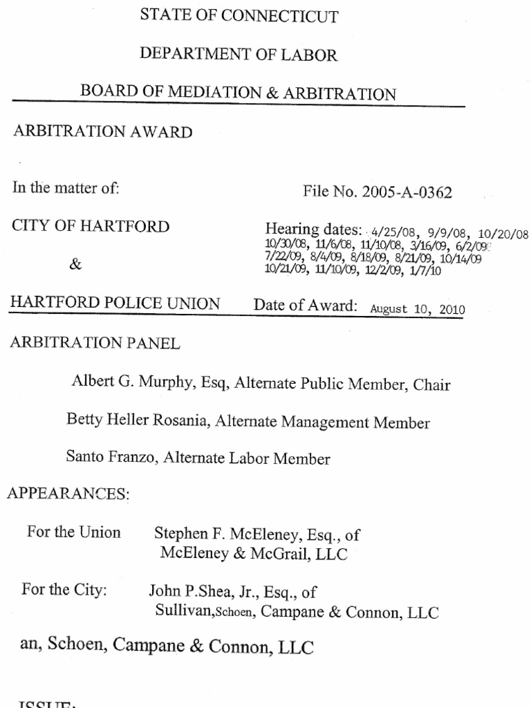 The City of Hartford and the Hartford Police Union are parties to two collective bargaining agreements. Both contracts contain identical provisions providing for just cause for discipline. T…