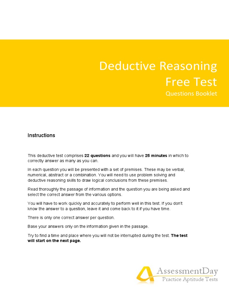 This deductive test comprises 22 questions and you will have 25 minutes in which to