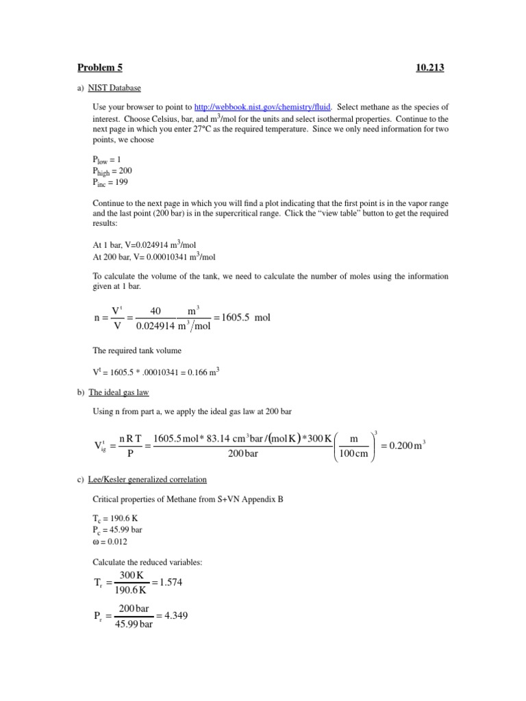 Use your browser to point to http://webbook.nist.gov/chemistry/fluid. Select methane as the species of