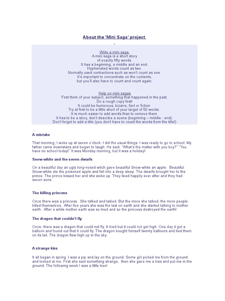 It has to be a story, don’t describe a scene (beginning – middle - end).