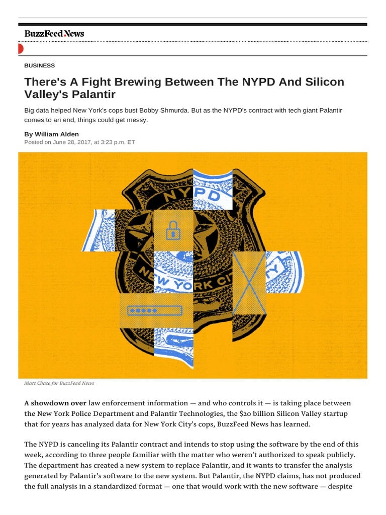 the New York Police Department and Palantir Technologies, the $20 billion Silicon Valley startup