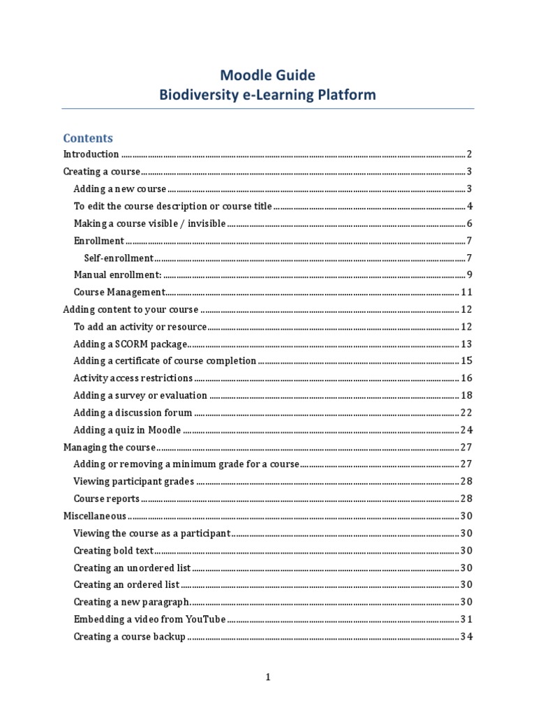 Moodle Course Setup Guide for Biodiversity