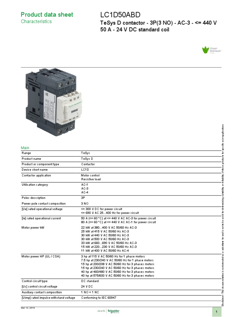 Product data sheet LC1D50ABD