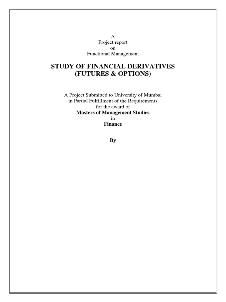 Study of Financial Derivatives (Futures & Options) : A Project Report On Functional Management