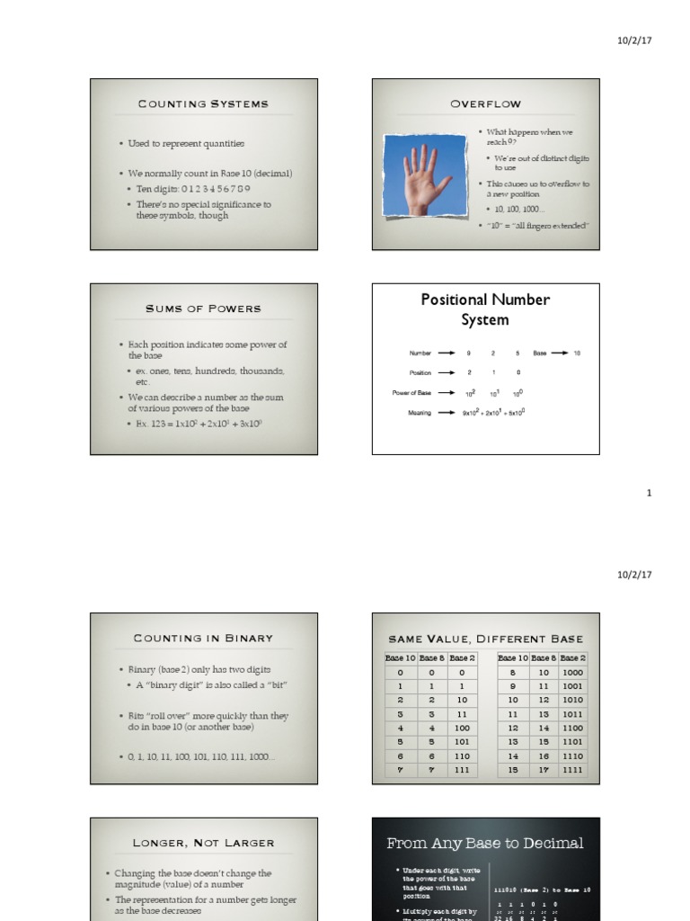 • We normally count in Base 10 (decimal)
