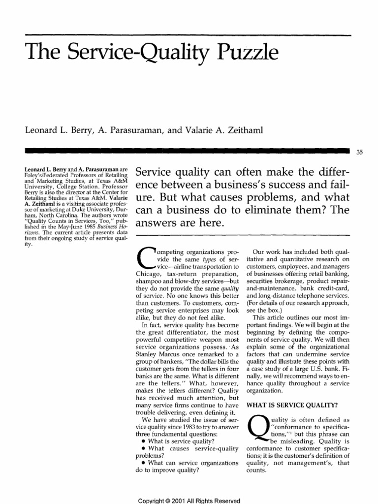 Leonard L. Berry, A. Parasuraman, and Valarie A. Zeithaml