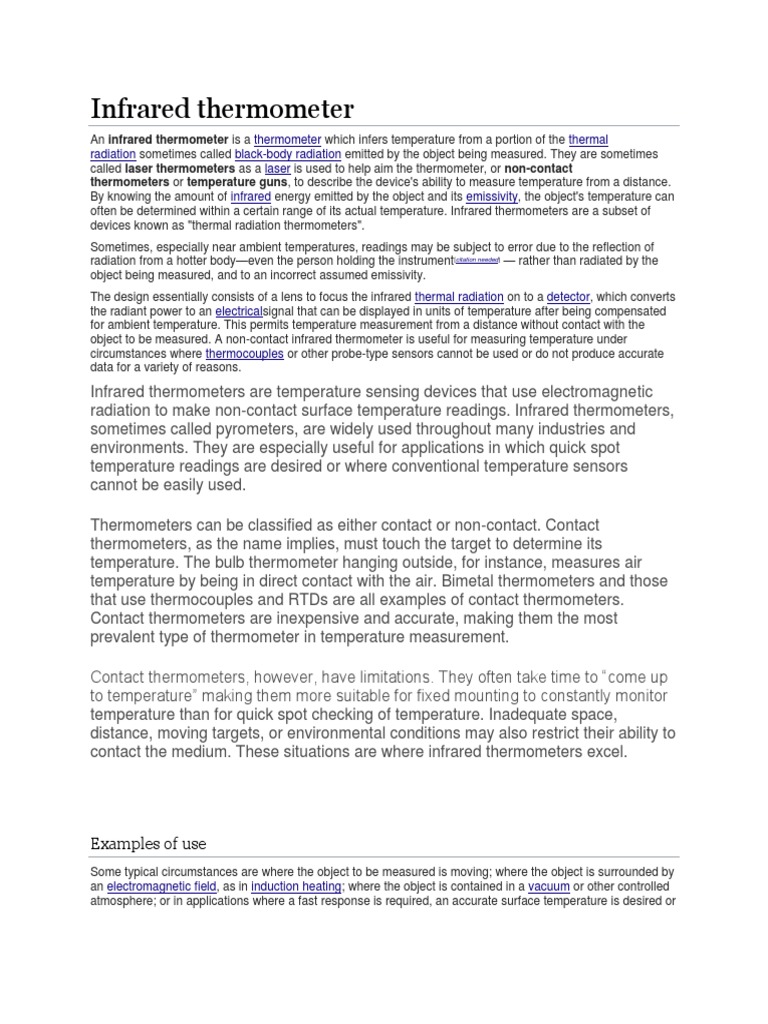 radiation to make non-contact surface temperature readings. Infrared thermometers,