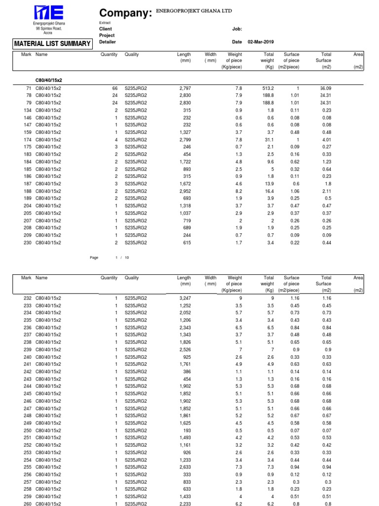 MATERIAL LIST SUMMARY Detailer Date 02-Mar-2019