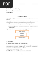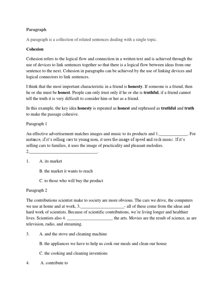 sentence to the next. Cohesion in paragraphs can be achieved by the use of linking devices and