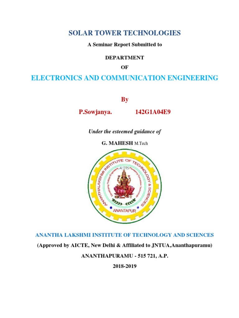 This is to certify that theseminar report entitled“solar tower technology “is bonfire work