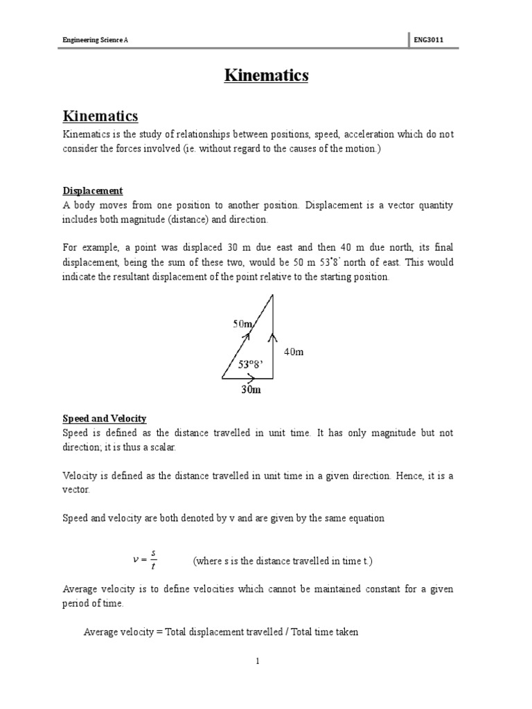 Kinematics is the study of relationships between positions, speed, acceleration which do not