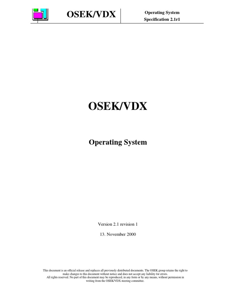 OSEK/VDX is a joint project of the automotive industry. It aims at an industry standard for an