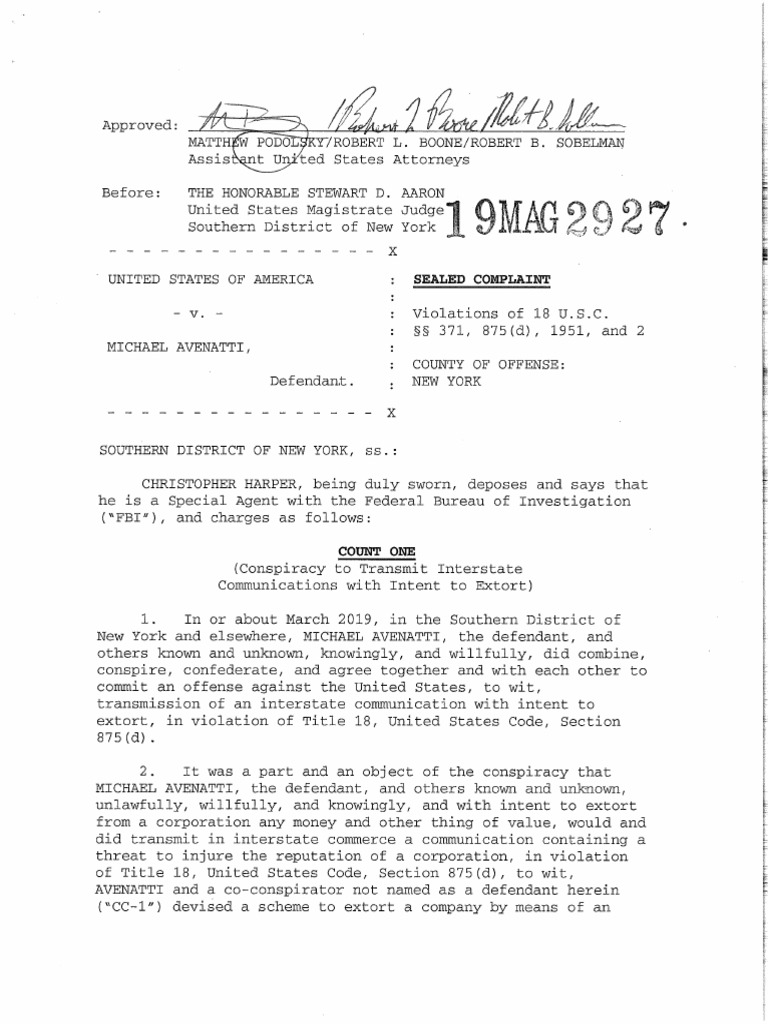 U S V Michael Avenatti Complaint