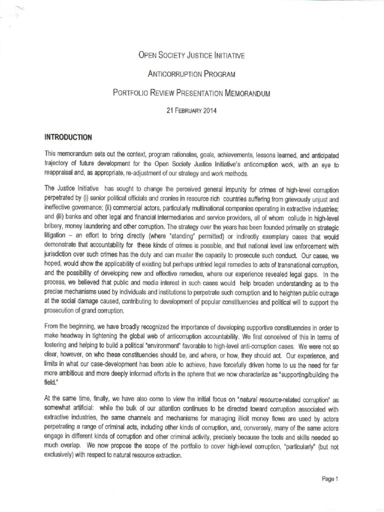 trajectory of future development for the Open Socioly Justice Intiative's anticorruption work, with an eye to