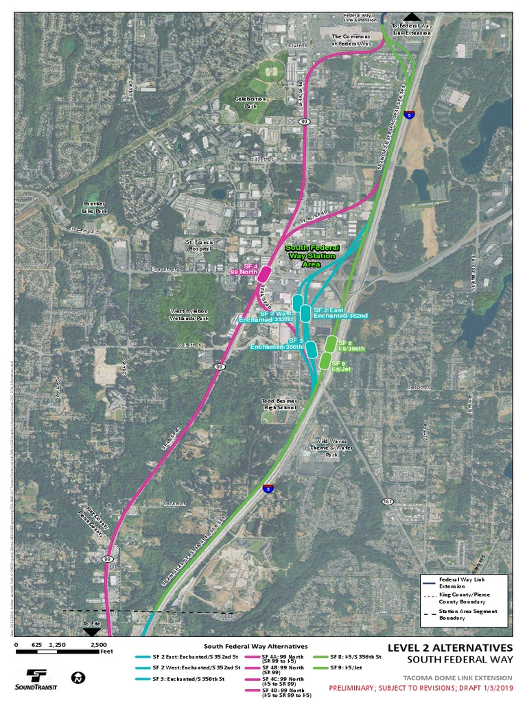 D a t e : 1 1 / 1 2 / 2 0 1 8 A u t h o r : w o r s h a l y P a t h : U : \ P S O \ P r o j e c t s \ C l i e n t s \ 1 8 0 0 - H D R E n g i n e e r i n g \ 5 5 4 - 1 8 0 0 - 0 1 7 T a c o m a D o m e L i n k E x t \ 9 9 S v c s \ G I S \ m a p d o c s \ B a s e m a p s \ L e v e l 2 \ L 2_ S F W_ A l t e r n a t i v e s . m x d