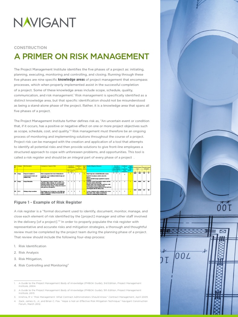 18. Zack, James G., Jr., and Brian C. Fox. “Hope is Not an Effective Risk Mitigation Technique,” Navigant Construction Forum, March 2012.