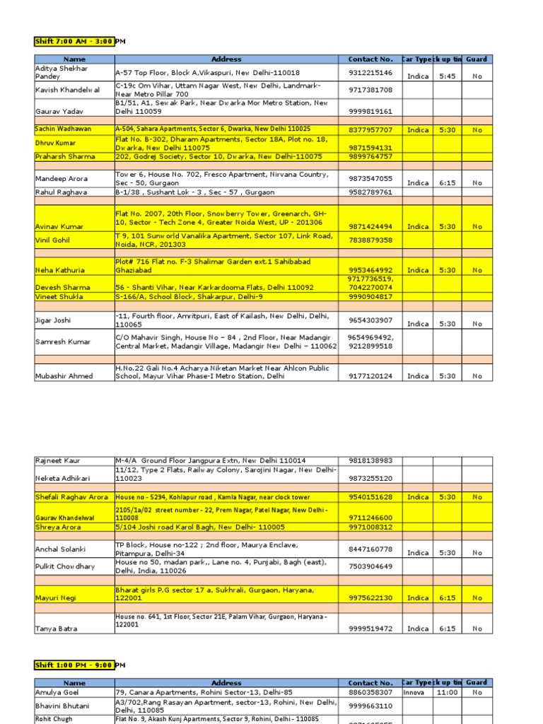 Sandeep Sharma 21C 2nd Floor, Sec – 7, Dwarka, New Delhi – 110075 9899222131 Indica 16:30 No