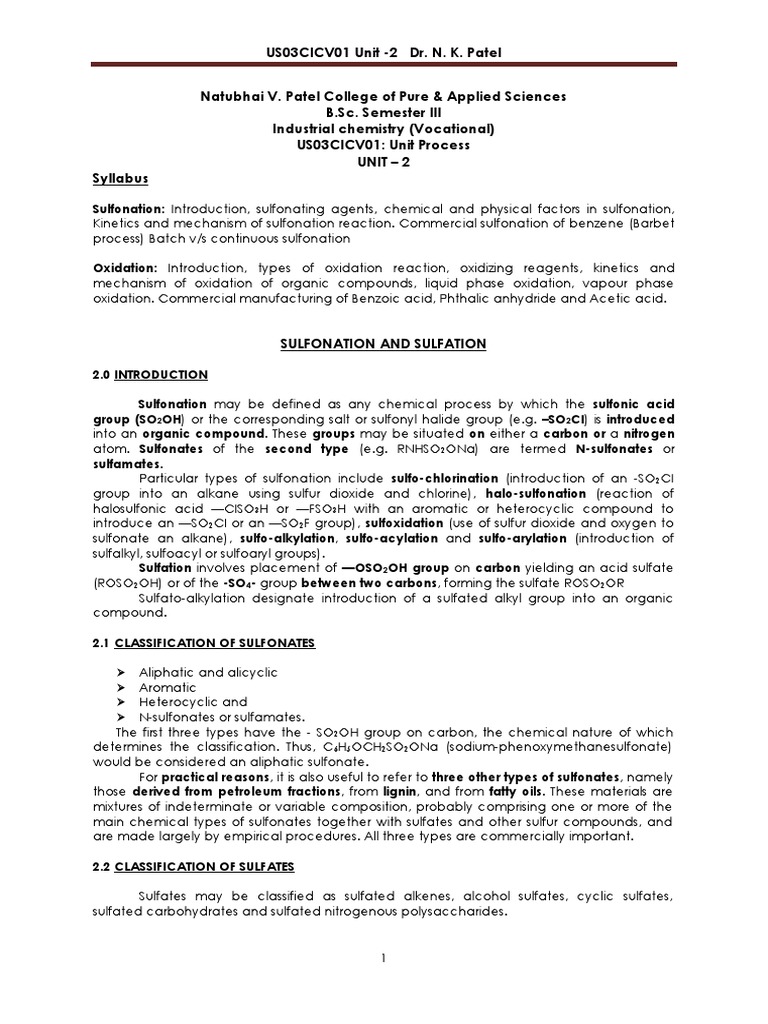 1. Explain sulfonation and sulfation. State the principle sulfonating 03 SPU 2005