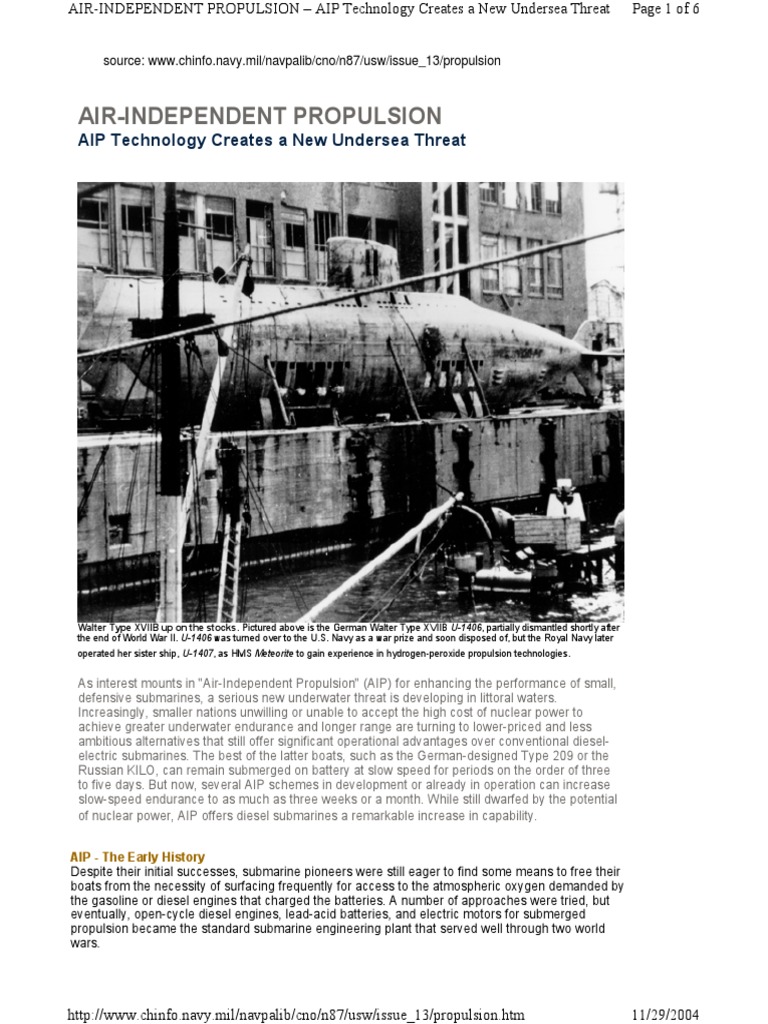 AIR-INDEPENDENT PROPULSION – AIP Technology Creates a New Undersea Threat Page 1 of 6