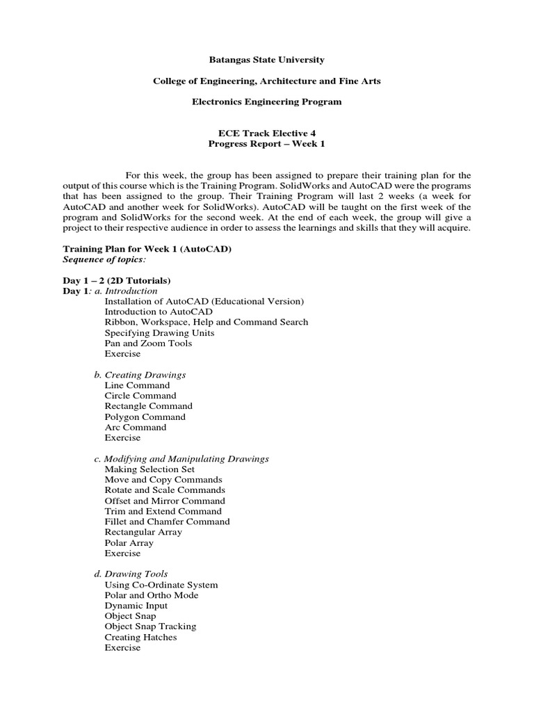AutoCAD and another week for SolidWorks). AutoCAD will be taught on the first week of the