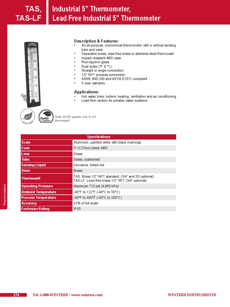 174 Tel: 1-800-WINTERS / www.winters.com WINTERS INSTRUMENTS