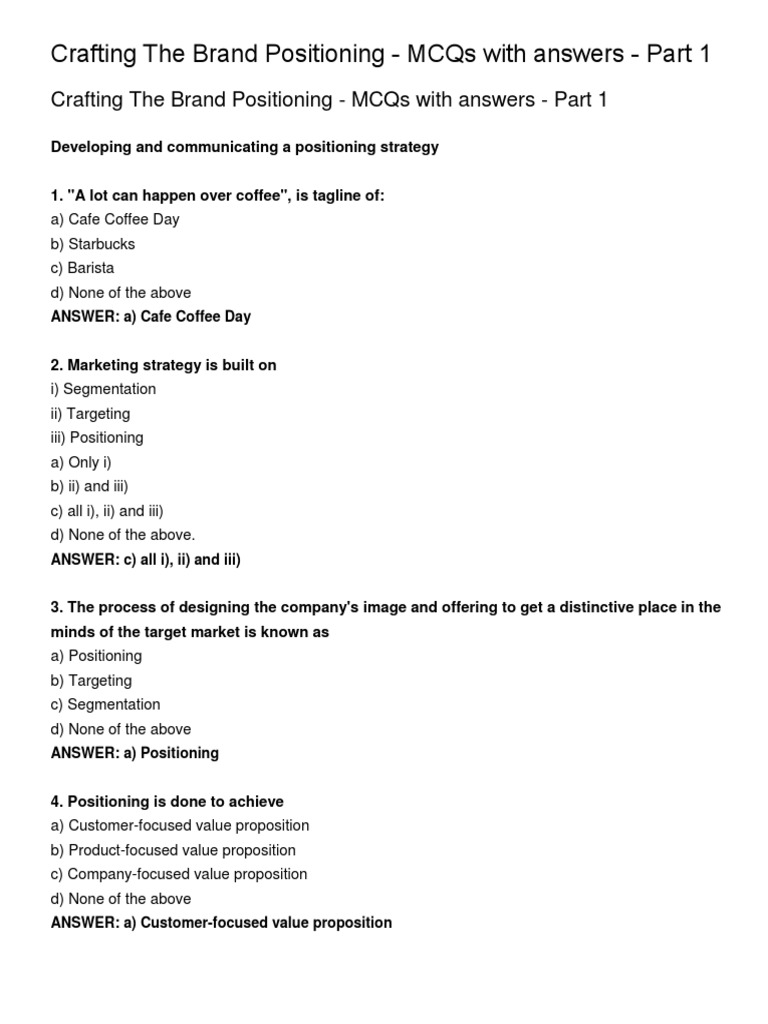 Crafting The Brand Positioning - MCQs with answers - Part 1