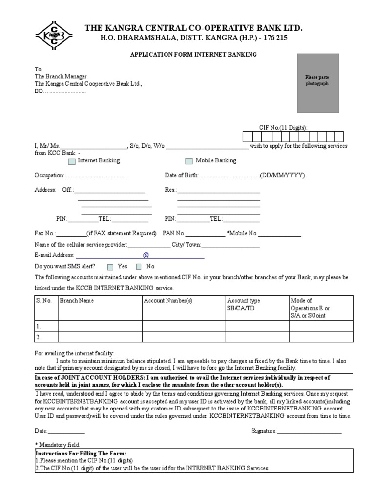 I/We hereby authorise Mr/Ms_______________________(Name of the applicant for KCCBINTERNETBANKING) to avail the