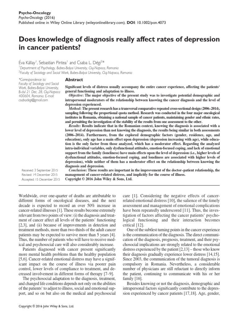relevant from two points of view: (i) the diagnosis and treat- tigation of factors affecting the cancer patients’ psycho-