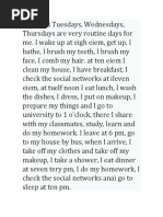hair and comb my hair. I prepare my breakfast, Then, I go back to my