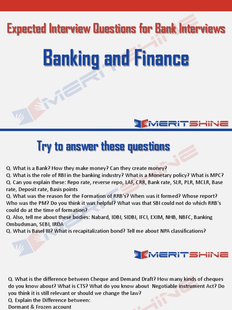 Expected Interview Questions for Bank Interviews