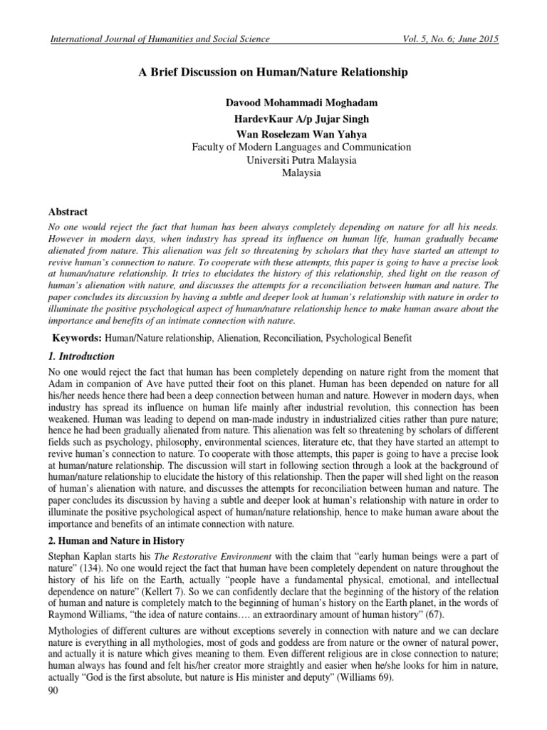 A Brief Discussion on Human/Nature Relationship