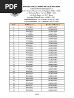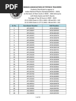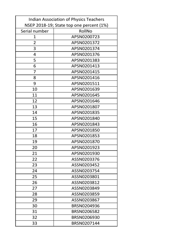 This document contains a list of 389 roll numbers of students who are in the top 1% of performers in the National Standard Examination Program (NSEP) 2018-19 for the Indian Association of Physics Teachers. The roll numbers are organized sequentially with identifying codes indicating the state or institution of each student.
