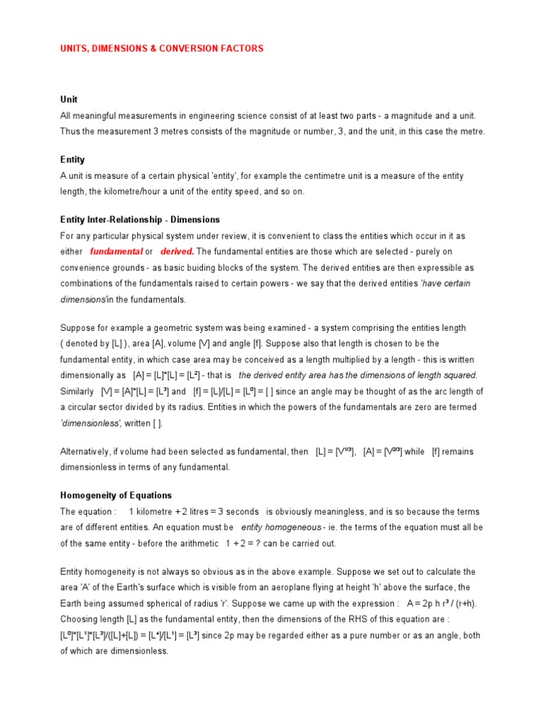 UNITS, DIMENSIONS & CONVERSION FACTORS
