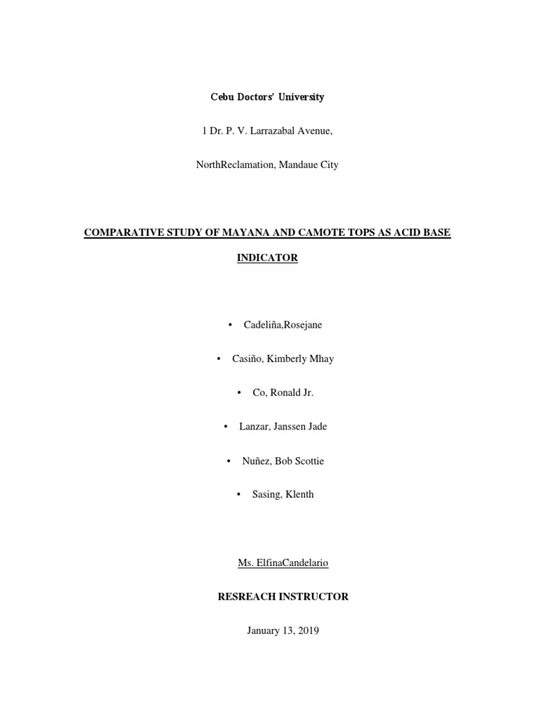 We need to conduct a research on a comparative study of camote tops and mayana leaves as an